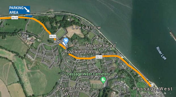 The R610 road to Passage West is signposted from the N40 South Ring Road.