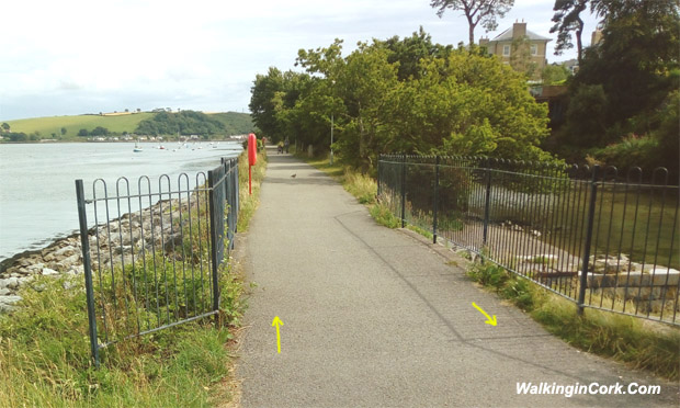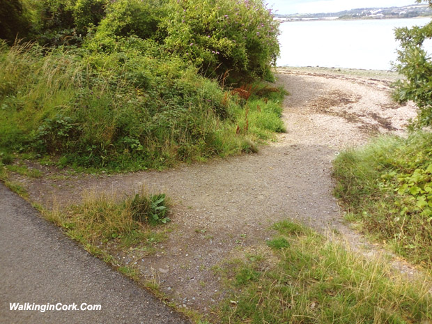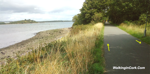 This is really a very nice section of Greenway as the trees form a sort of tunnel overhead and there is no noise from cars. If you listen carefully, you may hear the sound of the Cork to Cobh train at the other side of the harbour or the Howler Monkeys 3kms away in Fota Wildlife Park.