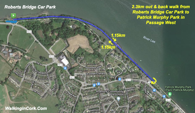 This easy walk starts at the Roberts Bridge Car Park and heads east alongside the shoreline to Passage West. This Greenway is situated on the route of the old Cork to Crosshaven railway line and is completely level for this walk.